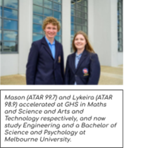 Geelong High School's Accelerated Learning Program is a great opportunity for Grade 6 students who are looking for extra challenge in Years 7-9 and who are motivated and engaged learners that wish to be part of a program for like-minded students.