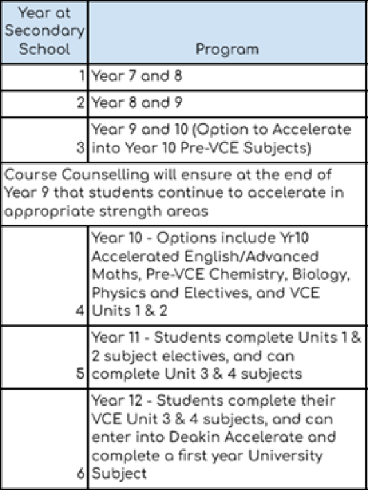 From Year 9 they will continue as an accelerated class, but also will be able to take up pre-VCE subjects as part of our wider acceleration program open to all students.