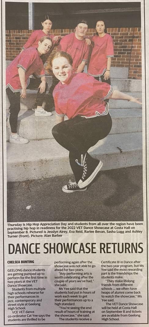 Miss Albrecht and I are excited to be planning the 2022 VET Dance showcase after a 2-year hiatus. Our 40 VET Dance students are working hard to present solo, small group and ensembles routines in Jazz, Hip Hop, Ballet, Tap, Contemporary and Lyrical styles, and we would love your support. The show is Thursday 8th September, 6pm at Costa Hall and tickets are $20 (available at the GHS office). There are some exceptional performers, and we’d love to share with you what they’ve been working on!