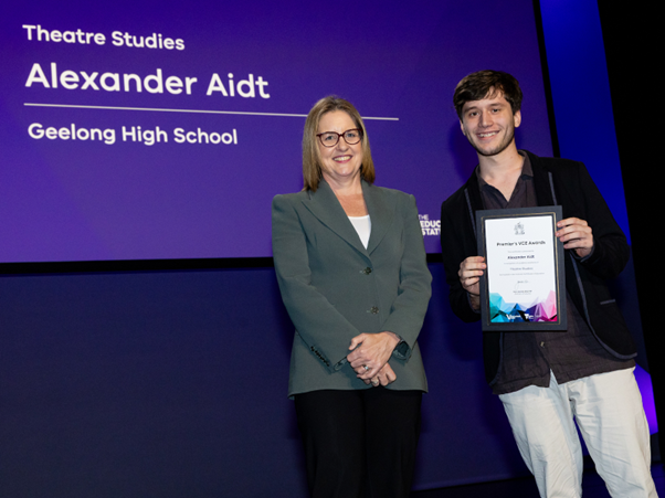 Alex received a Premier’s VCE Award for excellence in Theatre Studies, making him one of the top Theatre Studies students in the state.