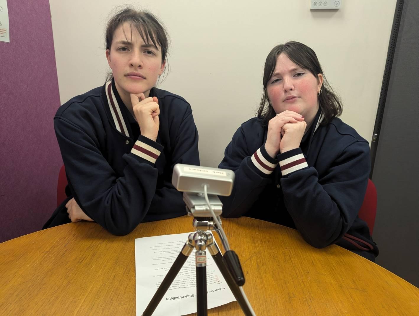 Eleanor and Ella, our presenters for the student bulletin which is recorded each Monday. The video provides an opportunity for students to present important information on school events and activities to each class via a video link.