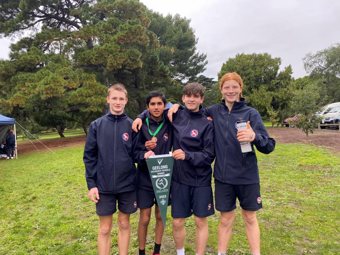 1st place in the 16 Boys Team on points at the Geelong Cross Country. Off to Melbourne to compete in the Western Metro Division in Term 3